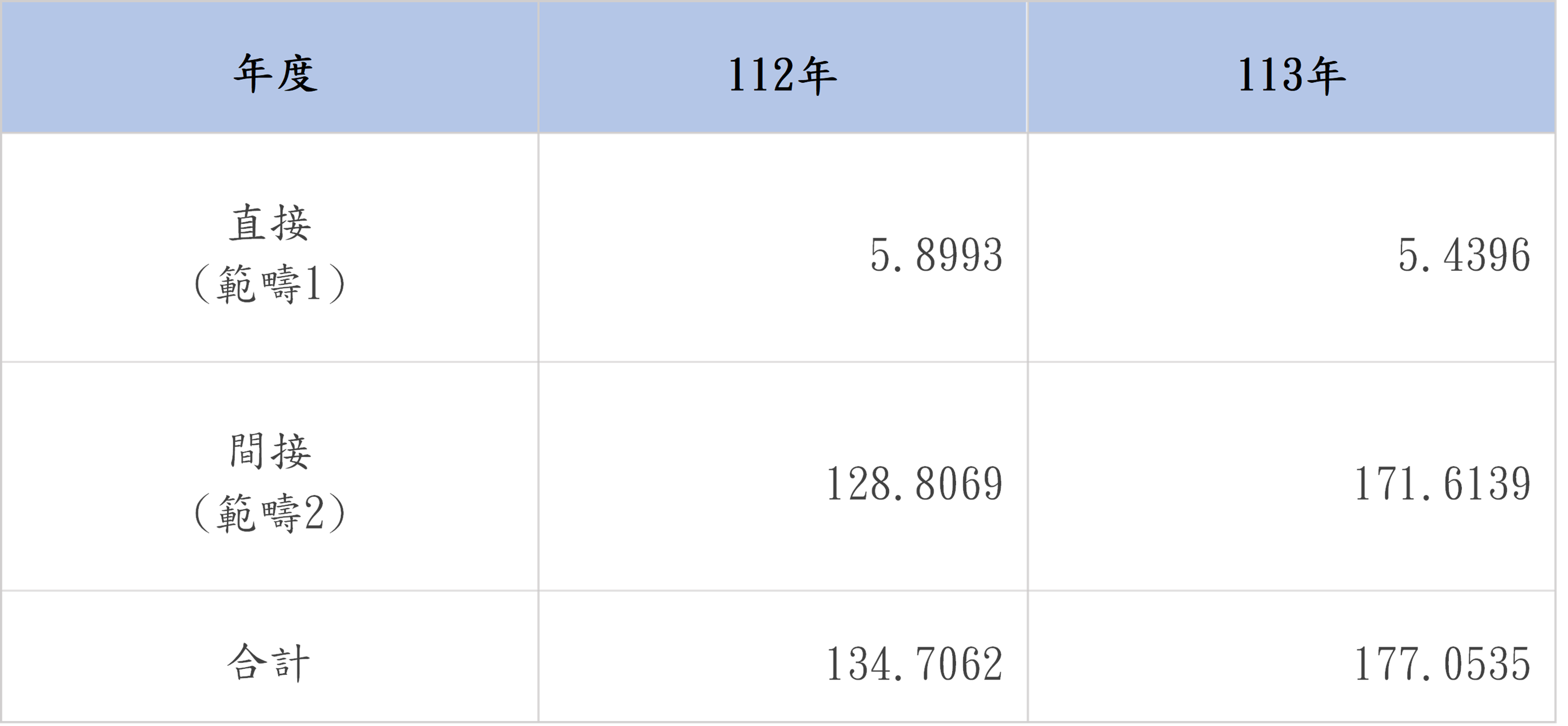 本公司過去二年溫室氣體排放量統計如下(單位: 公噸CO2e):