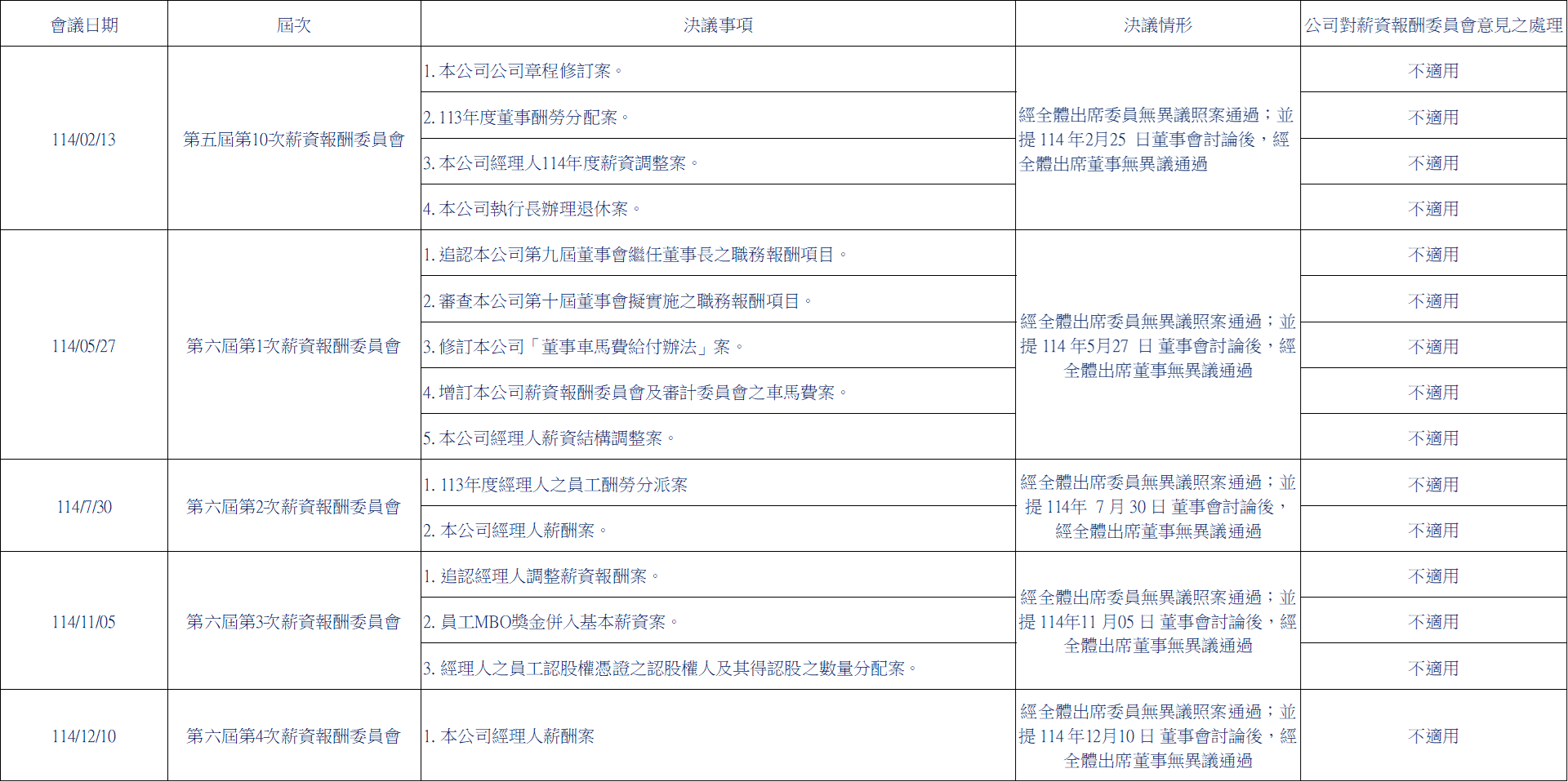 2024年薪酬委員會績效考核自評結果已於2025年第一季董事會及薪酬委員會中提報.